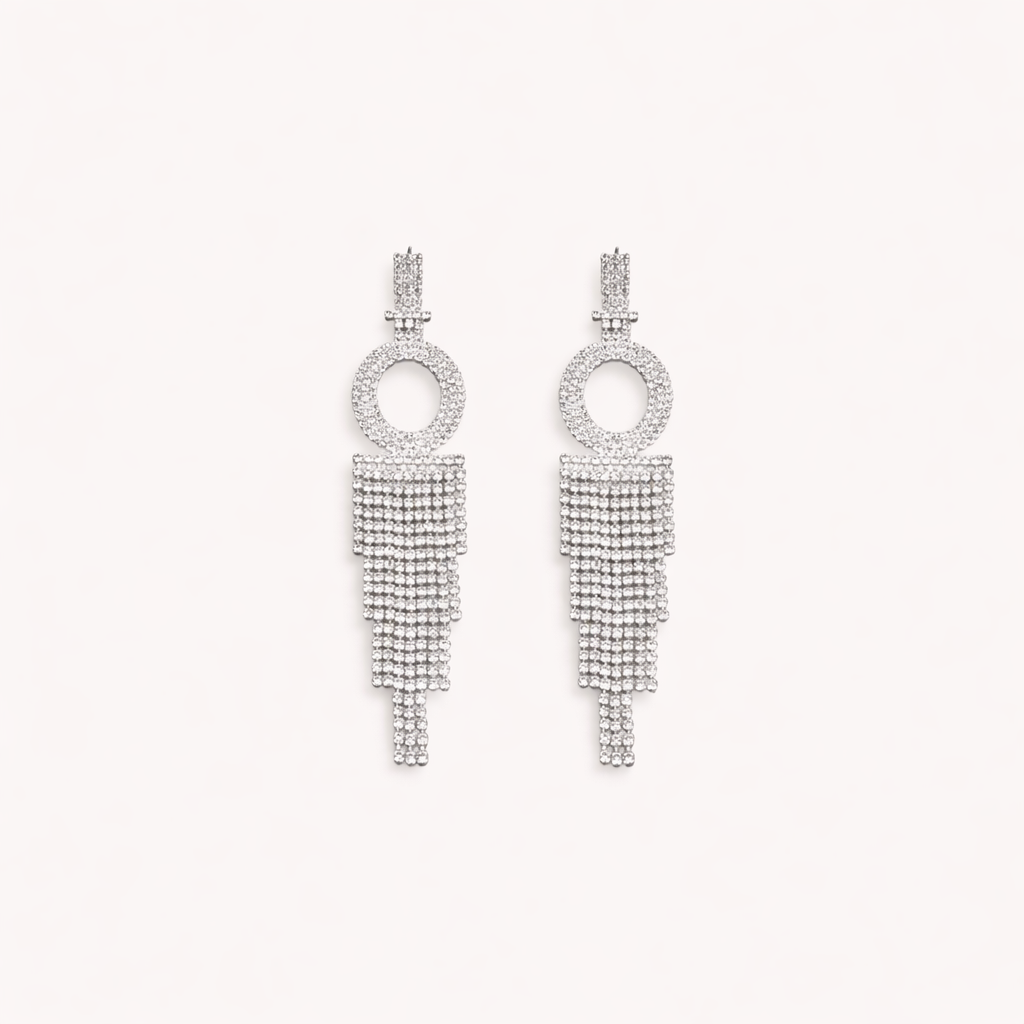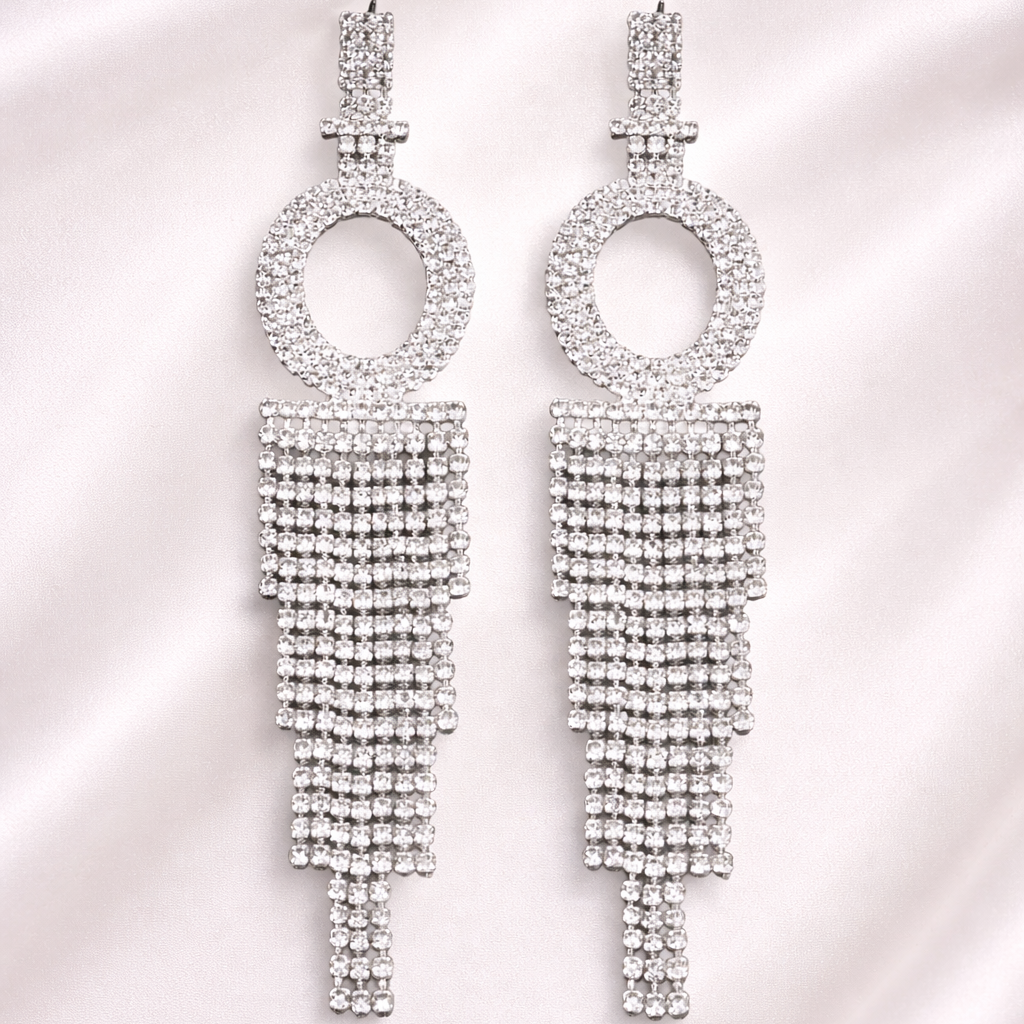 Our tassel earrings pair a sparkling letter-set rhinestone detail with a soft tassel drop, creating a modern, dressy statement that still feels effortless and light on the ear.