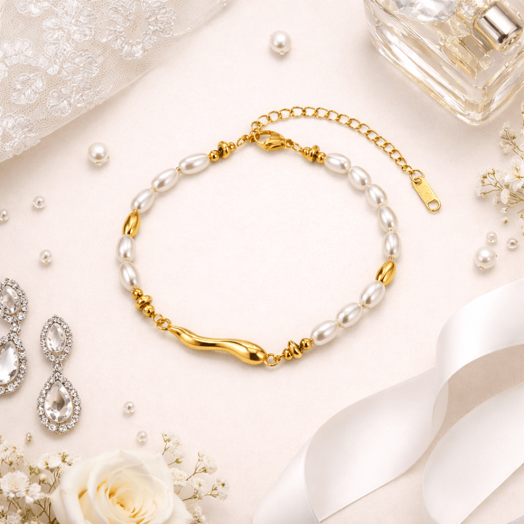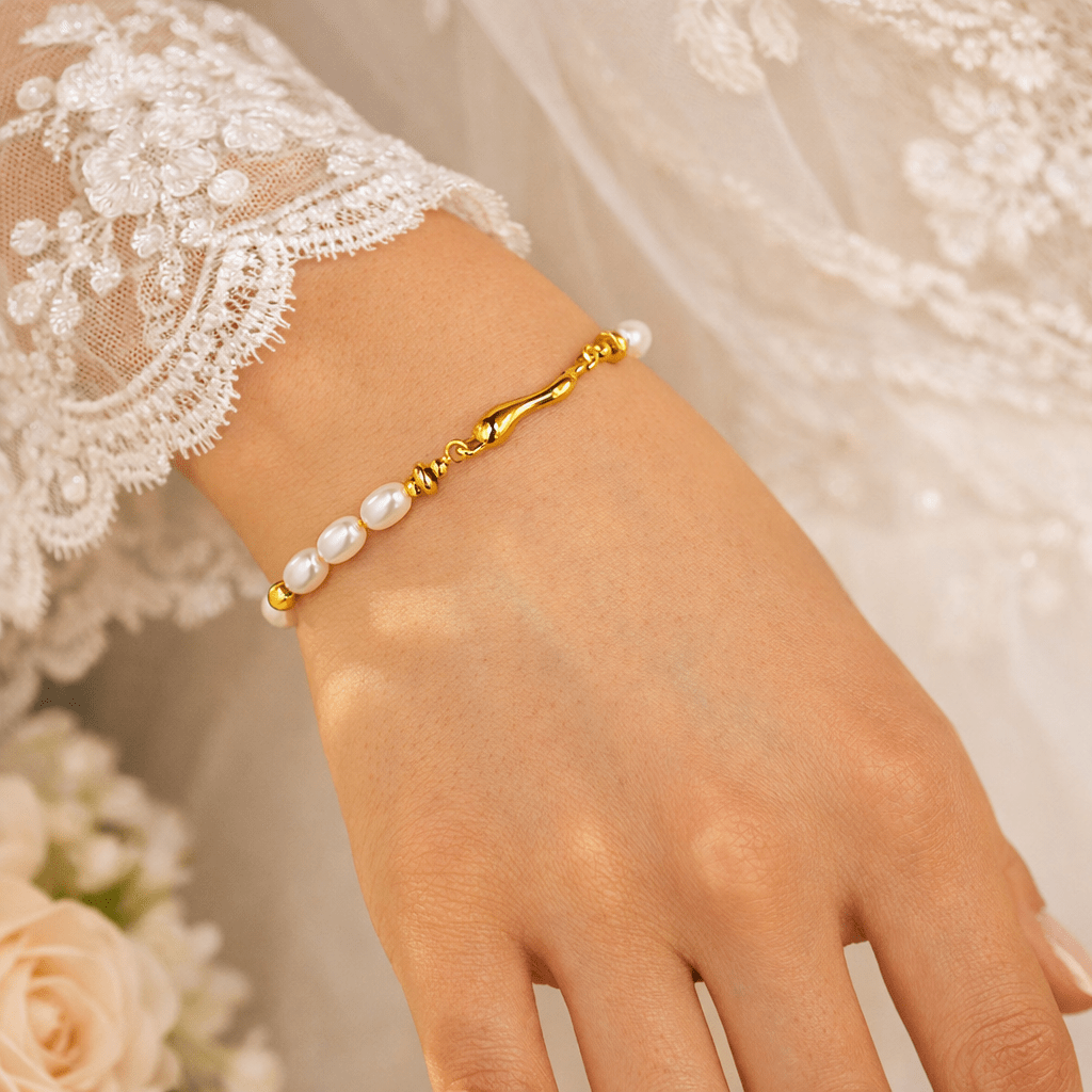 Cultured Pearl Bracelet celebrates the quiet elegance of natural freshwater pearls, carefully selected from oysters and freshwater mussels for their soft luster and organic beauty. The delicate pearls rest along a refined chain, creating a timeless silhouette that feels both graceful and effortlessly modern. Designed to bring subtle sophistication to the wrist, this piece pairs beautifully with both everyday looks and special occasions.