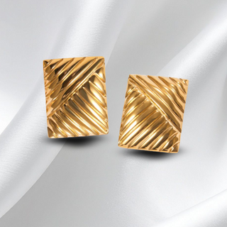 18k gold classic fashion triangle with braided texture design earrings - SMODDO