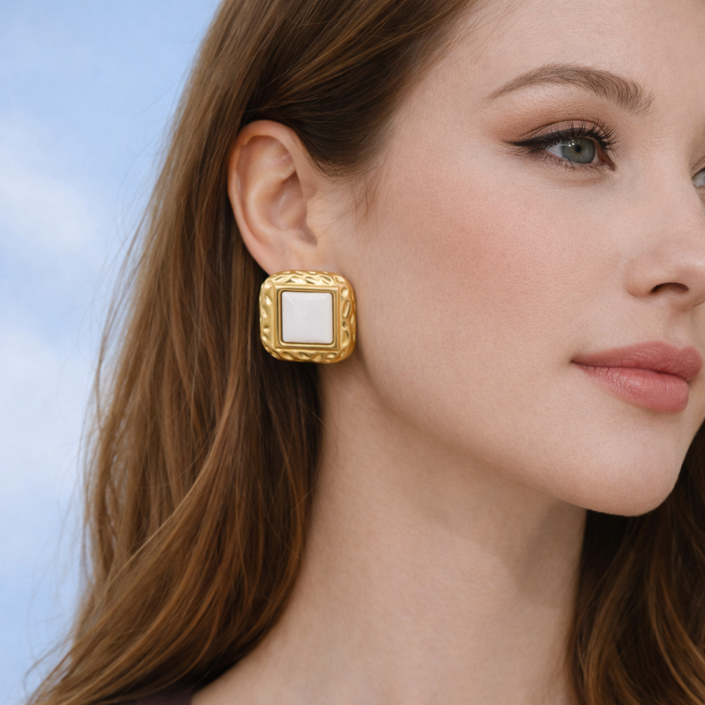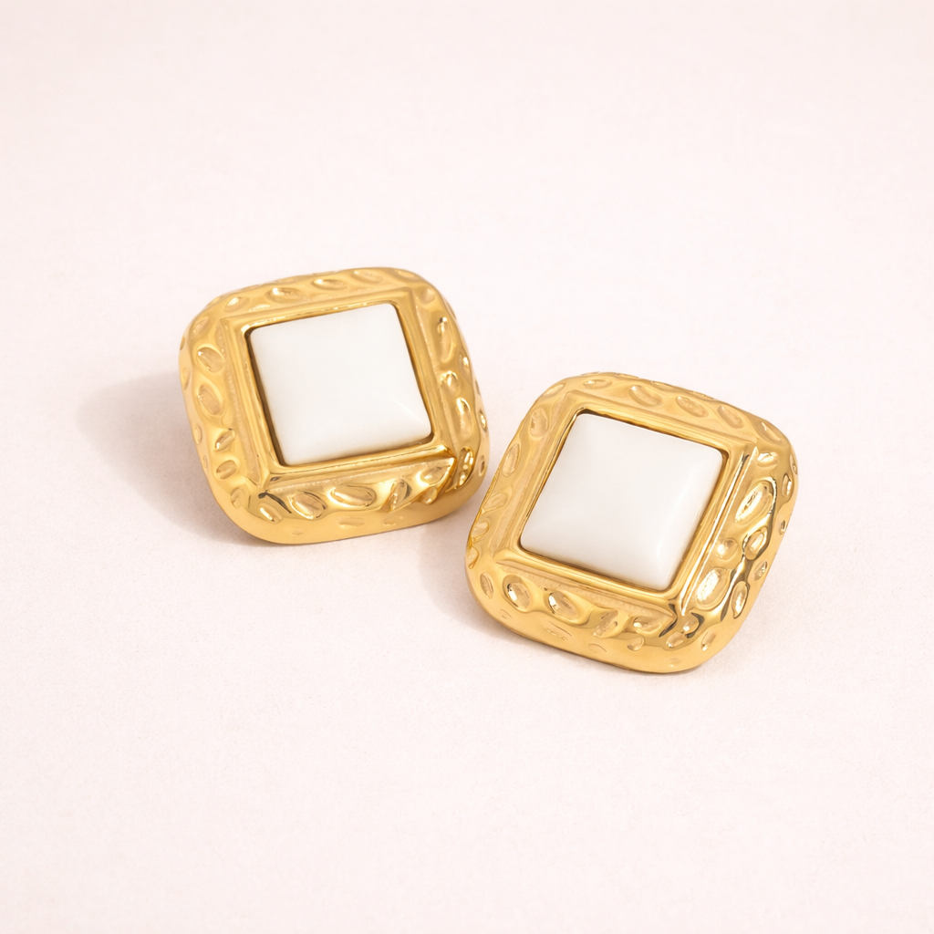 Gold-Plated White Agate Geometric Stud Earrings